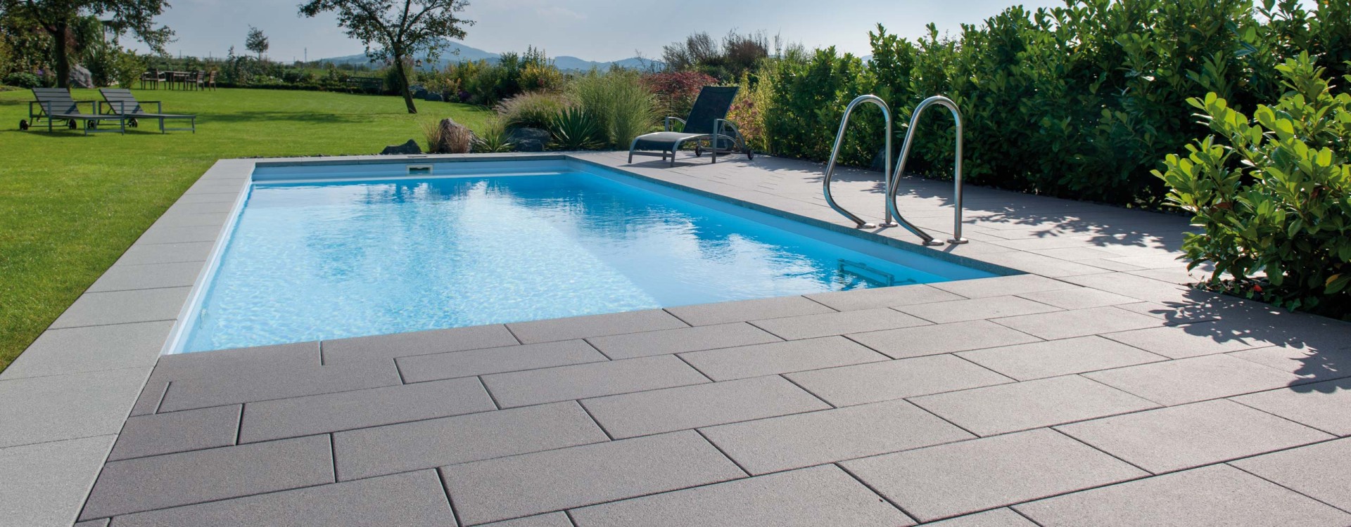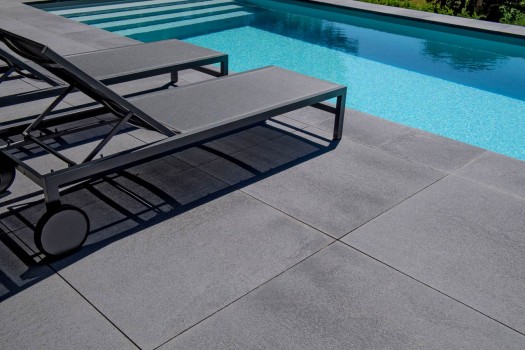 Arcadia, sterk in kleur en karakter, prettig beloopbaar voor zwembad en terras.